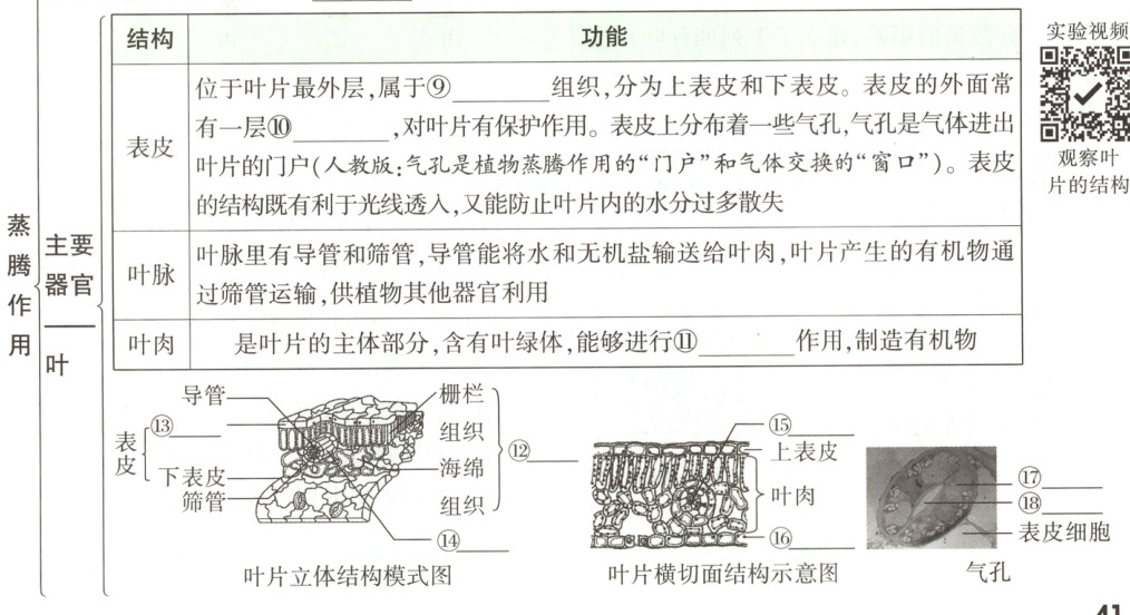 5. 要想了解舱内植物蒸腾作用的过程,首先要了解蒸腾作用的主要器官及其结构与功能。
