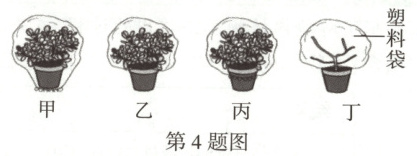 4. (2025石家庄模拟改编)如图是刘同学设计的“探究植物进行蒸腾作用的主要器官是叶”的实验,该实验最好选择下列哪种组合进行实验(