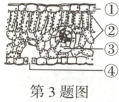 3. (2025唐山二模)如图是杨树叶片结构示意图。下列有关说法错误的是(