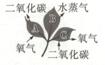 进入叶片为氧气,离开叶片为二氧化碳→呼吸作用;进入叶片为二氧化碳,离开叶片为氧气→光合作用;离开叶片为水蒸气→蒸腾作用