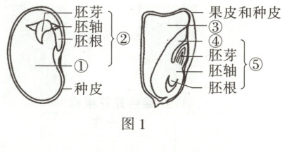 (1)如图是小冀笔记中的菜豆种子和玉米种子结构模式图。拿到小麦种子,观察并结合信息一得出:小麦种子中贮藏营养物质的结构与图 1 中的