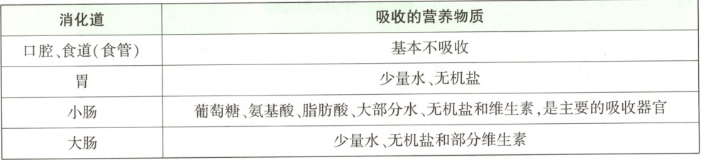 (1)概念:消化后的小分子营养物质通过消化道壁进入血液的过程