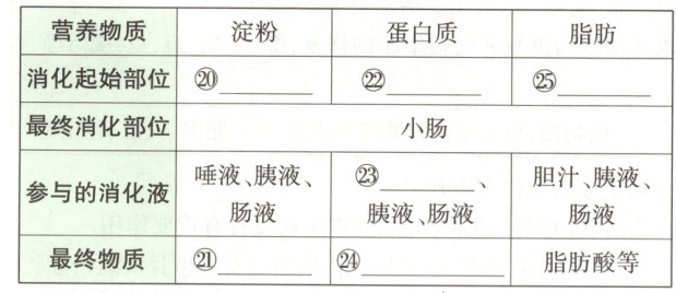 和小肠绒毛等结构增大了小肠的表面积薄:小肠绒毛及其内部的毛细血管和毛细淋巴管的管壁都只有㉞