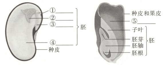 1. ①胚轴 ②胚芽 ③胚根 ④子叶 ⑤胚乳