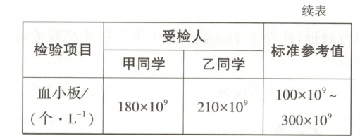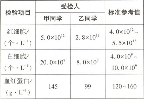 2. (2025 邯郸二模)下表是血常规化验单中两位同学的部分数据,相关说法错误的是 (