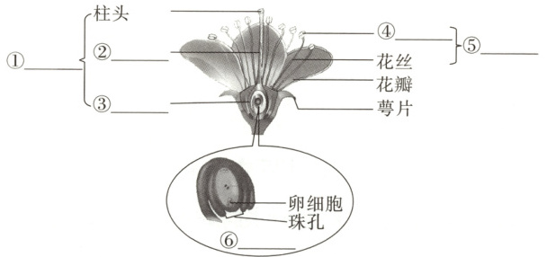 9. ①雌蕊 ②花柱 ③子房 ④花药 ⑤雄蕊 ⑥胚珠