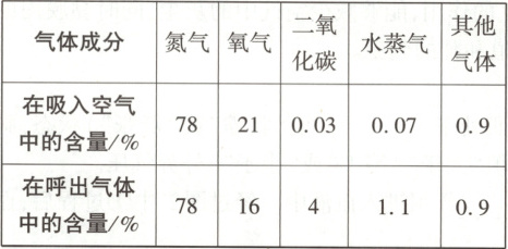 3. (2025 石家庄模拟)下表为人体吸入和呼出的空气中各成分所占比例。下列叙述不正确的是(