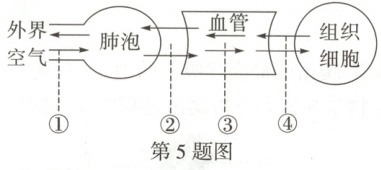 5. (2025 石家庄二模改编)如图中①~④表示人体与外界进行气体交换的过程,下列相关叙述正确的是(