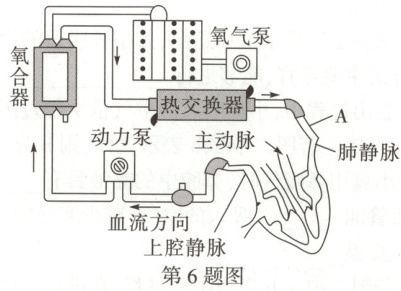 6. (2025 邢台二模)体外膜肺氧合(ECMO)是医疗领域的高端设备,俗称“人工肺”,主要用于为重症心肺功能衰竭患者提供持续的体外呼吸与循环,其主要结构如图所示。下列相关说法错误的是(