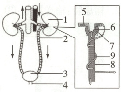 (6)运动后的排尿量减少,尿液排出体外依次经过的器官为1→