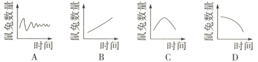 12. 雪豹隐伏,金雕俯冲,鼠兔难逃双雄捕。若雪豹和金雕的数量减少,短时间内鼠兔的数量变化可以用图中哪个曲线表示(