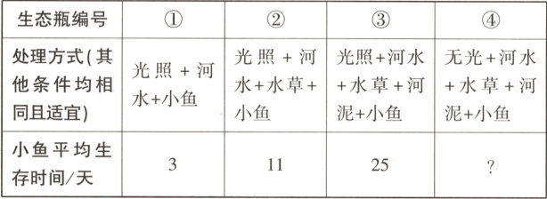 D. ④瓶中小鱼存活的时间比③瓶中短