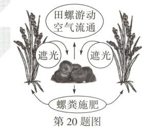 20. 稻田养螺是把水稻和田螺共同养殖在同一生态环境中,形成种间共生效应的养殖模式(如图)。下列说法错误的是(