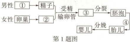 1. (2025 邢台二模改编)下图为人的生殖过程概念图,据图分析,下列说法错误的是(