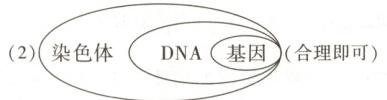 (2)请你在下面的方框中简要画出染色体、DNA 和基因之间的关系。