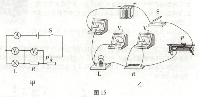 (1)用笔画线代替导线,按照图甲所示电路图,将图15乙中的实物图补充完整。