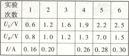 (4)小组交流时,有同学提出小明某次实验中$U_R$电压值读数错误,正确的读数为V。