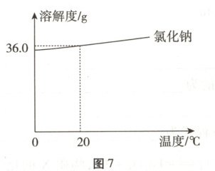 (1)由图7可知,20℃时,氯化钠的溶解度为36.0g,20℃时,饱和氯化钠溶液中溶质的质量分数是$\frac{36.0g}{100g + 36.0g}×100%\approx26.5%$。