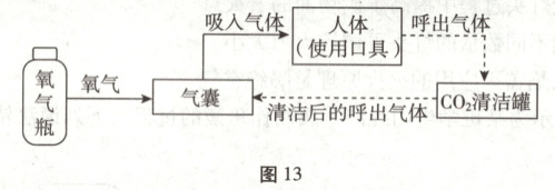 为防止人体吸入有害气体,使用自救器时夹住鼻子,只用嘴呼吸,使气体在“气囊→人体→CO₂清洁罐→气囊”间形成循环(如图13所示)。