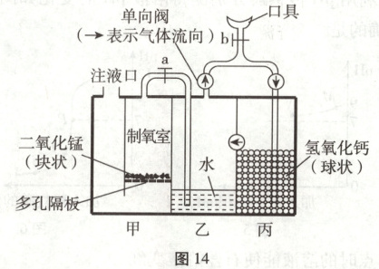 使用时,打开开关a、b,从注液口加入适量过氧化氢溶液,自救器开始工作。