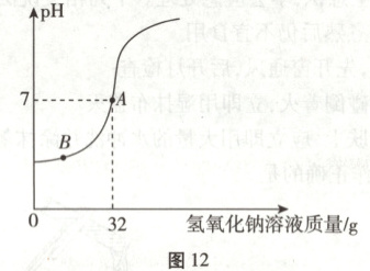 18. (5分)实验室欲测定一瓶标签破损的稀硫酸中溶质的质量分数,现取20g稀硫酸样品,将5%的氢氧化钠溶液逐滴加入到样品中,边加边搅拌,随着氢氧化钠溶液的加入,溶液pH的变化情况如图12所示。分析并计算: