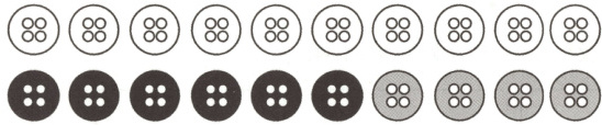 4. 一个袋子里装有 20 粒纽扣(除颜色外,大小、质地都一样),其中白色的有 10 粒,黑色的有 6 粒,灰色的有 4 粒。(如下图)