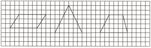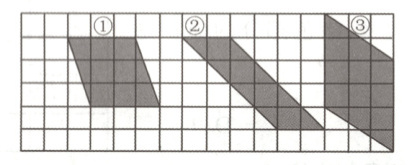 1. 在下面的方格纸中分别画出一个三角形和一个梯形,使它们的面积都与图中平行四边形的面积相等。(5 分)