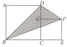 2. 下图中大正方形和小正方形的边长分别是 5 厘米、3 厘米,求三角形 $ DBF $ 的面积。(4 分)