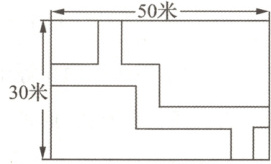5. 如图,在长为 50 米、宽为 30 米的长方形地块上,有几条纵横交错的小路,小路的宽均为 2 米。小路的占地面积是多少平方米?如果除小路外的其余部分均种植花草,则种植花草的面积是多少平方米?