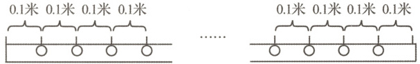 5. 如下图所示,为了防止衣架滑动,爸爸在一根晾衣杆上等距离打了 20 个圆孔。这根晾衣杆的长是(