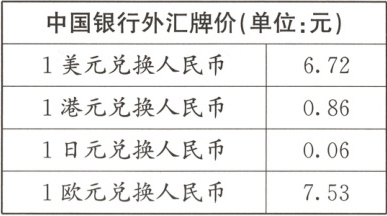 5. 同一块电子手表在美国标价 11 美元,香港标价 100 港元,日本标价 1100 日元,欧洲标价 10 欧元。(