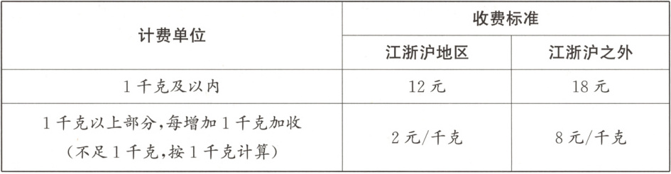 说明:江浙沪地区是指浙江省、江苏省、上海市;其他地方按江浙沪之外的计费标准收费。