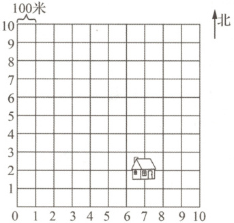 (2)如果她向北走,大约走到了哪个位置?在图中用“☆”表示出来,此时她距离人民公园多少米?(5分)