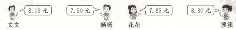 25.(贵阳市花溪区·改编)买一本故事书需要 7.90 元,下面四名同学在不知道具体价格的情况下分别进行猜测。(5 分)