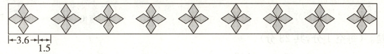 29. (贵阳市云岩区)云云用彩纸制作了一条花边,一共排列了 9 朵花。每朵花的宽是 3.6 厘米,每相邻两朵花之间的距离是 1.5 厘米。请你算出这条花边一共长多少厘米。(单位:厘米)(5 分)