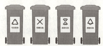 20. 新育人环保意识(贵阳市云岩区·改编)为了加强生活垃圾的分类管理,《贵阳市城镇生活垃圾分类管理条例》规定,生活垃圾按照可回收物、有害垃圾、厨余垃圾、其他垃圾的标准分类。贵阳市某小区居民楼要摆放如下图所示的四种垃圾桶(每种垃圾桶各摆一个),其中有害垃圾桶不能摆在最右边,一共有多少种不同的摆法?(4 分)
