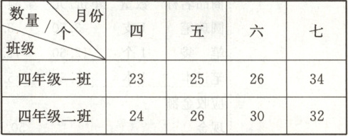 )月回收的易拉罐最少。(4 分)(3)四年级二班平均每月回收(