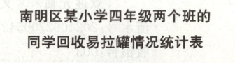 (4)根据南明区某小学四年级两个班的同学回收易拉罐的情况,你有什么建议?(2 分)