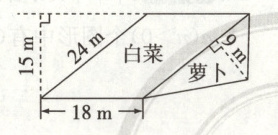15. (贵阳市清镇市)为了践行劳动教育,学校设置了专门的种植园,并把它分成了一个平行四边形和一个三角形,分别种上了白菜和萝卜(如下图)。(8 分)
