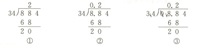 (4)在③除法竖式中,“20”表示的数的实际大小是(
