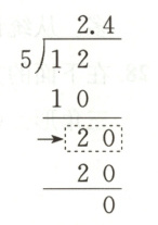 10. 在$12÷5$的竖式计算中,虚线框里的“20”表示的是(