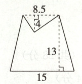 (8.5+15)×13÷2−8.5×4÷2=135.75(平方厘米)