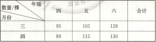 27. 2024 年阳光小学开展了植树活动,具体情况如下表:(8 分)