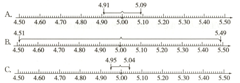 7.(贵阳市云岩区·仿练)一个两位小数精确到十分位约是 5.0。下面各图中,(