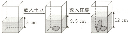 8. (贵阳市清镇市)下面是比较土豆和红薯的体积的实验,长方体容器的长是 12 厘米,宽是 8 厘米。下列说法中正确的是(