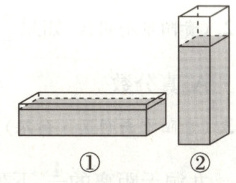 23. (贵阳市南明区)一个密封的长方体水箱,从里面量长是 80 厘米,宽和高都是 20 厘米。当水箱如图①放置时,水深 16 厘米,当水箱如图②放置时,水深多少厘米?