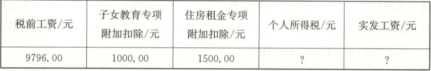 张阿姨这个月的个人所得税和实发工资是多少? (8分)