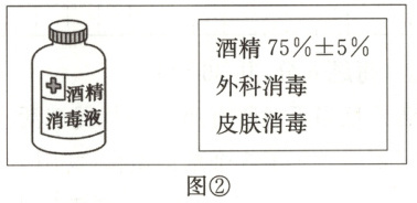 9. 观察图②,根据对某种酒精消毒液的介绍,下列选项中描述正确的是(