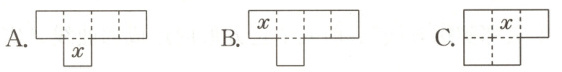 4.A 疑难解析 A、B选项都可以折成无盖正方体纸盒,但是B选项的字母“$x$”在折成的无盖正方体纸盒的侧面;C选项不能折成无盖正方体纸盒。故选A。