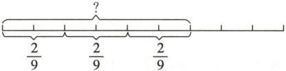 $\frac{2}{9}$ + $\frac{2}{9}$ + $\frac{2}{9}$ = $\frac{2}{3}$